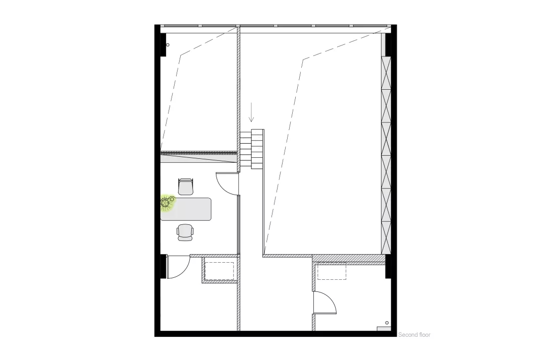 空間每個元素都希望滿足功能的同時,本身就是一個符號.于是門就變成碎木頭塊,規(guī)矩中藏著隨性,配合平面符號,讓這面墻充滿樂趣。