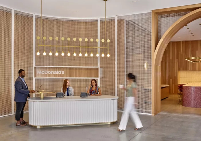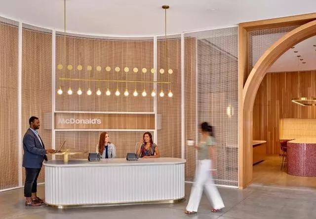 麥當(dāng)勞總部芝加哥接待區(qū)對金色拱門進(jìn)行了微妙的點(diǎn)頭
