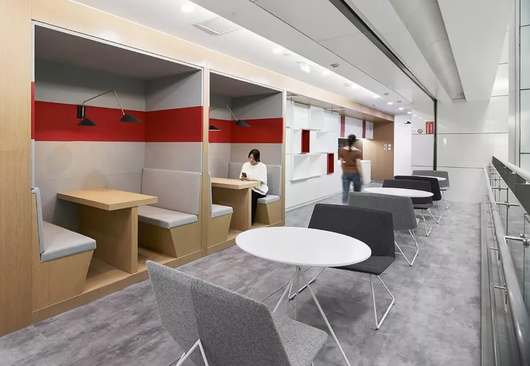 辦公空間設(shè)計(jì)無(wú)論如何發(fā)展,追求高效率始終是不變的目標(biāo)。艾迪爾倡導(dǎo)的靈活辦公,是想通過(guò)辦公環(huán)境設(shè)計(jì)鼓勵(lì)員工多互動(dòng),更有量有質(zhì)的交流,因此在設(shè)定一系列休閑洽談區(qū)以外,茶水區(qū)這一休憩,互動(dòng),輕松交流的高頻區(qū)也是設(shè)計(jì)重點(diǎn),是體現(xiàn)企業(yè)風(fēng)格和人文關(guān)懷的重點(diǎn)打造區(qū),滿(mǎn)足員工不同的選擇和空間體驗(yàn)感。