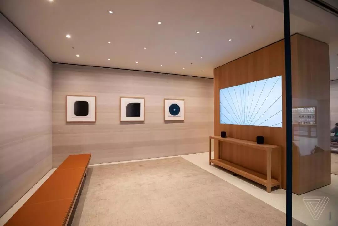 該店鋪內(nèi)重新設(shè)計(jì)了攝影大道,其背景墻適用于新款手機(jī)的拍照測(cè)試,這里也是世界上第一個(gè)開(kāi)設(shè)專(zhuān)門(mén)展示AirPods的大道的商店。