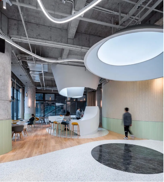 如同城市生態(tài),辦公空間亦成為交流互動的樞紐中心,移除大多數(shù)中國典型辦公室的正式和過時的模式特征,設計師創(chuàng)造了可滿足當代員工的需求的現(xiàn)代、創(chuàng)新和舒適的工作空間。