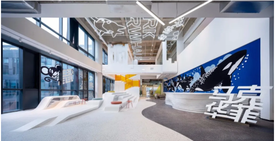 尖端時尚品牌馬克華菲(Mark Fairwhale)的總部位于上海。該項目基于品牌文化基因,主要運用了水與鯨魚的主題元素,并且創(chuàng)造出靈活而又敏捷的工作空間。同時借此呼應其新鮮年輕的風格定位。