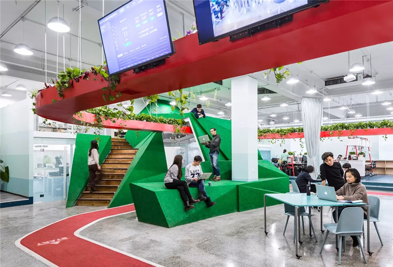 在辦公室從事園藝活動是一種人們關(guān)心環(huán)境,主動改善空氣質(zhì)量的積極行為。對于北京這個全球污染最嚴重的城市來說,空氣質(zhì)量是非常重要的問題,因此我們把空氣過濾與檢測系統(tǒng)都置入到“紅環(huán)”內(nèi),實時的空氣數(shù)據(jù)會在跑道上的屏幕中顯示,工作人員能夠隨時監(jiān)控并調(diào)整室內(nèi)空氣的質(zhì)量。