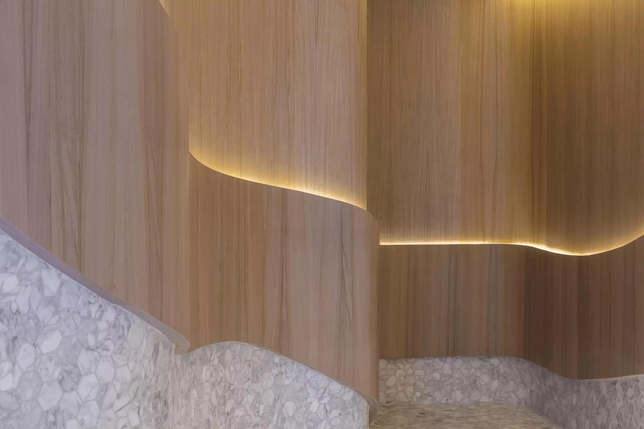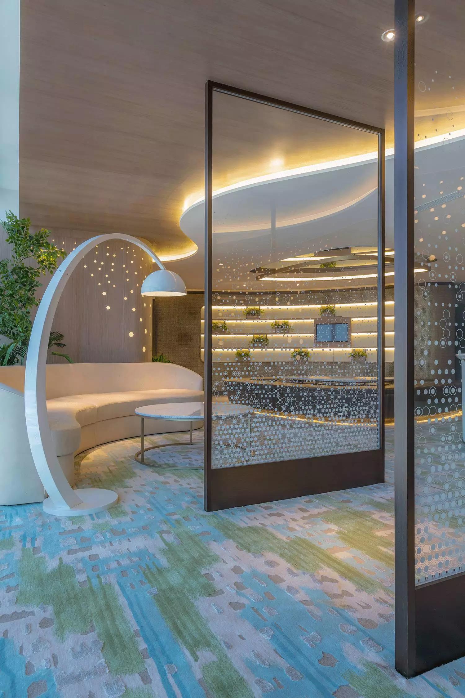 波浪起伏的輪廓舒適宜人,以材質(zhì)和色彩轉(zhuǎn)換空間的調(diào)性,薈萃最恬適的元素塑造循序漸進(jìn)的氛圍體驗(yàn),猶如憩時(shí)份花園回廊,緩和心靈才能得以配合各種療程。