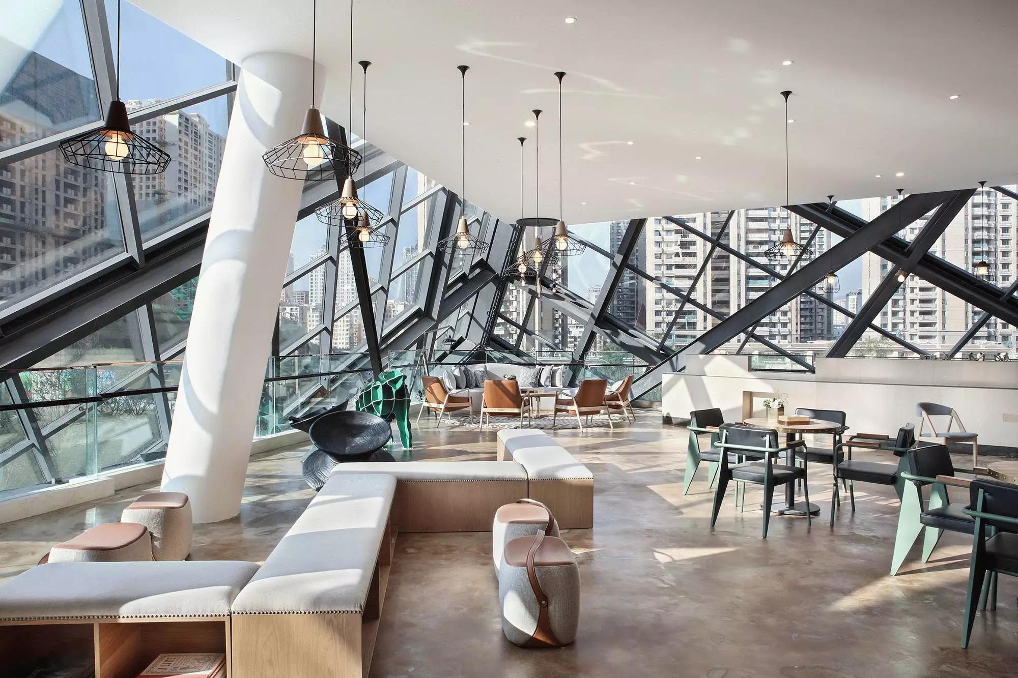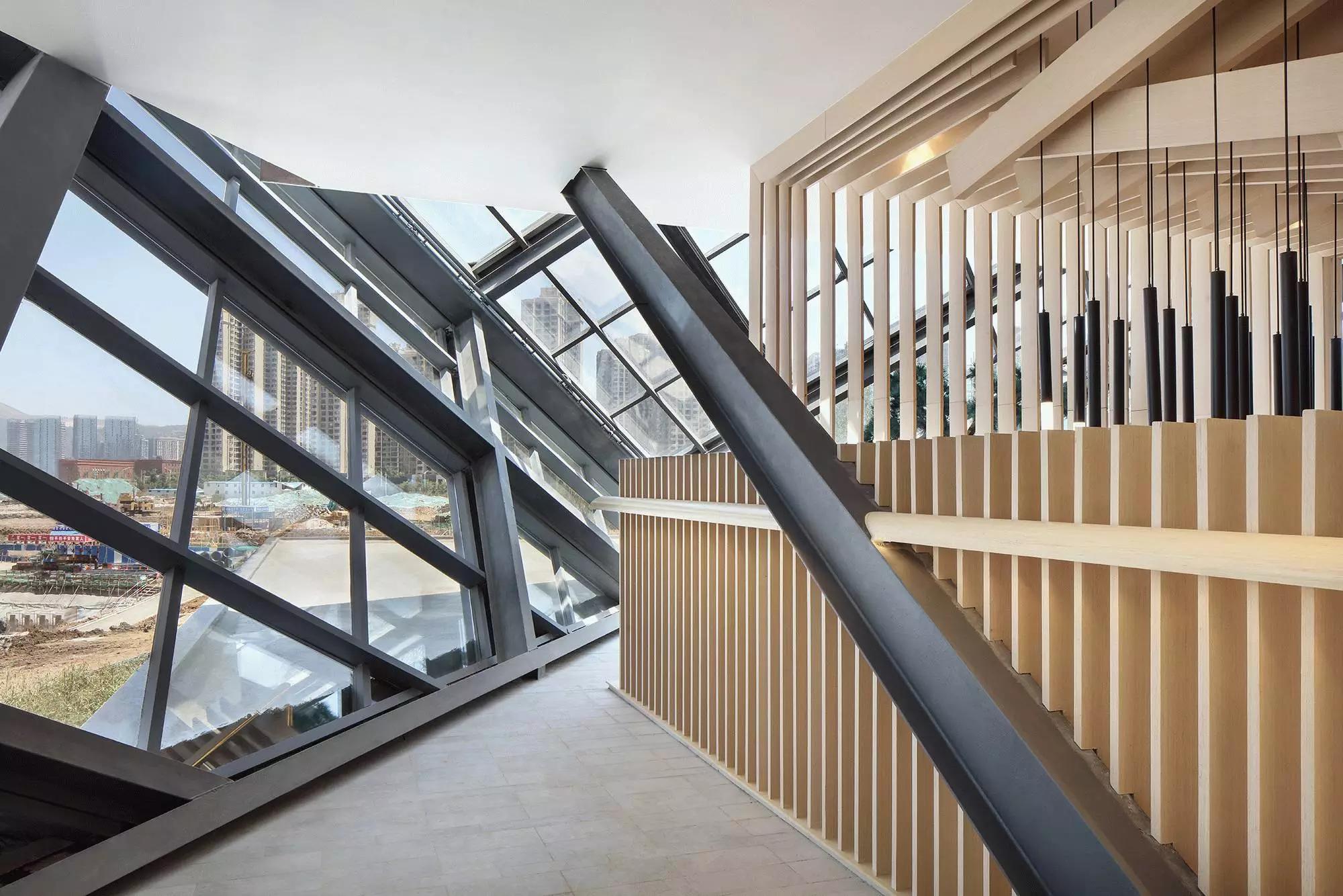 項目原屬昆明聯想科技城,后由融創(chuàng)地產接盤,他們希望將該建筑打造成為集辦公、商業(yè)、展示等多元化為一體的空間,并使其成為昆明新的城市地標建筑。接手本案的主創(chuàng)設計師是默存設計的季青濤,作為具有建筑師背景的主創(chuàng)設計師,從建筑空間的思維從事空間設計便成為一種必然。在原有“盒子”空間的內部,設計師以木結構對空間進行了重組和分割。